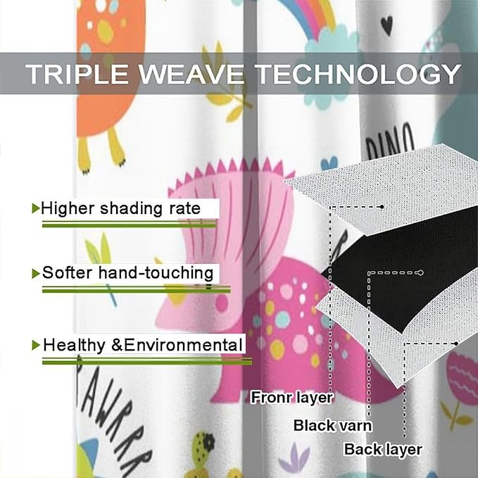 Cartoon Dinosaur Curtains for Kids Boys Girls Home Decor Childish Cute Dino Animals Print Pattern Rod Pocket Blackout Window Drapes for Nursery Baby Bedroom Playroom W21xL63in 2 Panels
