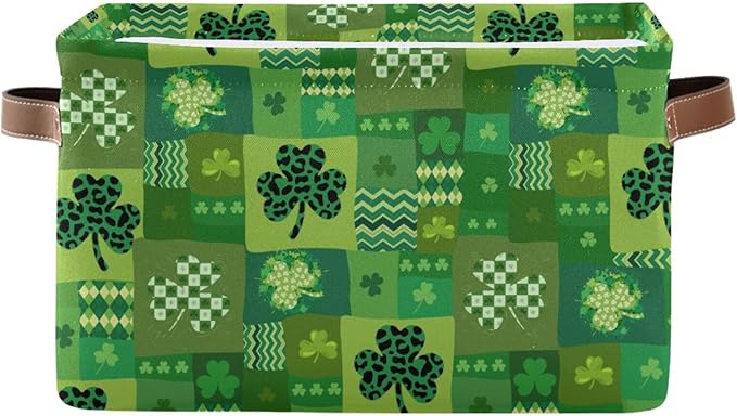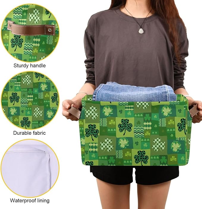 St Patrick's Day Storage Basket Cube Storage Bins Organizer Bag Collapsible Closet Shelf Baskets with handle for Baby Cloth Pet Toy Book 14.2×10.2×8.3 IN
