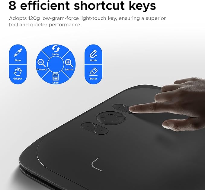 - 8 Customizable Shortcut Keys: The drawing tablet comes with 8 programmable shortcut keys, allowing you to streamline your workflow. Easily access tools like brush switching, eraser, undo, and brush size adjustment for enhanced productivity.