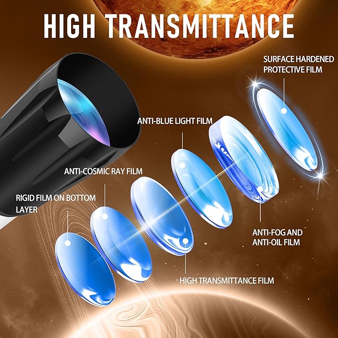 - Superior Optics: Dianfan astronomy telescope features a focal length of 800 mm and a fully coated 90 mm objective lens. The large aperture gathers more light for brighter, clearer views, high-transmission coatings enhance contrast and color for sharp, vivid images for an enjoyable stargazing experience