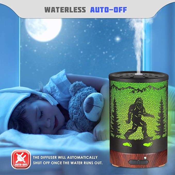 Essential Oils Diffuser,Christmas Aromatherapy Diffuser,Birthday Gifts for Women Mom Grandma,Metal Cool Mist Humidifier with 7 Colors Lights Waterless Auto Off Air Diffusers (Bigfoot)