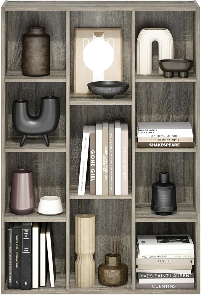 Furinno Luder 11-Cube Open Shelf Bookcase, Bookshelf, French Oak