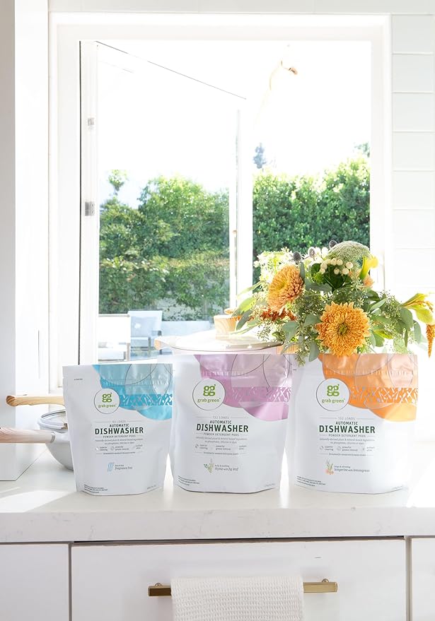 - Achieve Streak-Free Dishes With Brilliant Shine - Washing with Grab Green Natural Dishwasher Detergent is the best way to completely remove grease and rinse residue from plates, cups, bowls, silverware, and more