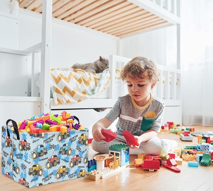 HIYAGON Rectangular Monster Truck Basket for Kids Baby Basket for Boys and Girls Cute Toy Storage Organizer Bin Box Truck Room Decor(Monster Truck)