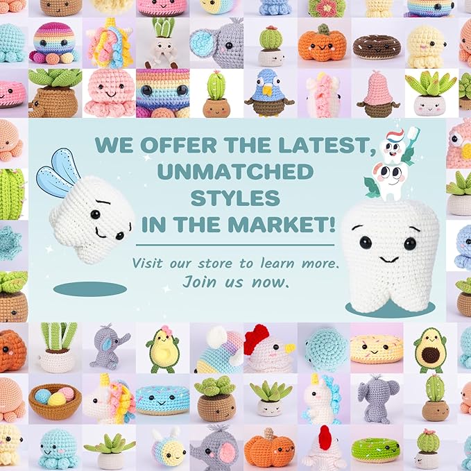 Crochet Kit for Beginners, Crochet Kit w Step-by-Step Video Tutorials, Crochet Starter Kit Learn to Crochet Kits for Adults Kids Beginners, Crochet Kit Tooth (40%+ Yarn Content)
