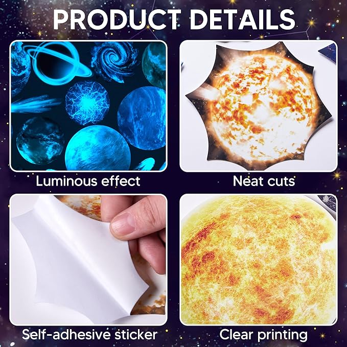 - 【Best Gift for Boys and Girls】These stickers form a mini solar system in the room. It is not only a great idea to decorate bedroom, but also a perfect astronomy enlightenment textbook. Great for any occasion: Birthday, Halloween, Thanksgiving, St. Patrick's Day, Christmas, Easter etc.