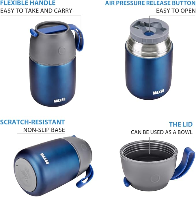 - 【100% Leak-Proof】Airtight, easy to open and generous capacity. Take this Insulated food jar, your storage jars won’t leak in your lunch bag anymore!