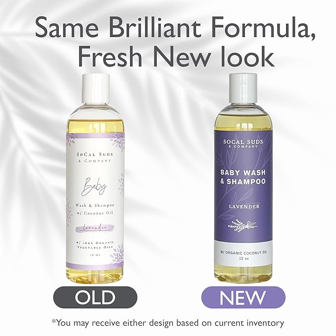 SoCal Suds & Company Baby Shampoo & Body Wash, 2-in-1 Organic Gel - Gentle Castile Soap with Vitamin-Infused Oils & Botanicals - Natural Care for Sensitive Skin & Body Hypoallergenic - 12oz Lavender
