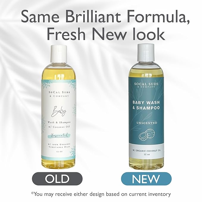 SoCal Suds & Company Baby Shampoo & Body Wash, 2-in-1 Organic Gel - Gentle Castile Soap with Vitamin-Infused Oils & Botanicals - Natural Care for Sensitive Skin Hypoallergenic -12oz Fragrance Free 2Pk