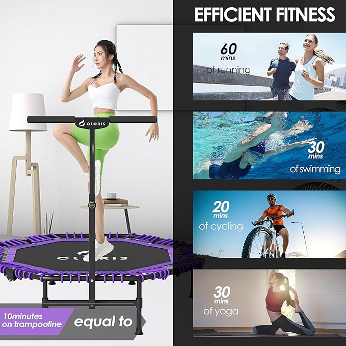 CLORIS 38in/48in Folding Trampoline - Max Load 220lbs / 450lbs Mini Trampoline Rebounder Trampoline for Adults with Adjustable Foam Handle, with safty Padded Cover Best Gift for Kids/Adult