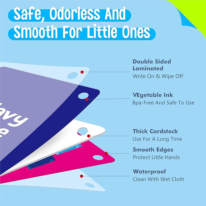 - Durable and Safe: Made of high-quality, sturdy paper material, these flashcards are sturdy and durable. The rounded edges ensure they are safe for little hands, allowing kids to play and learn without any risk of injury.