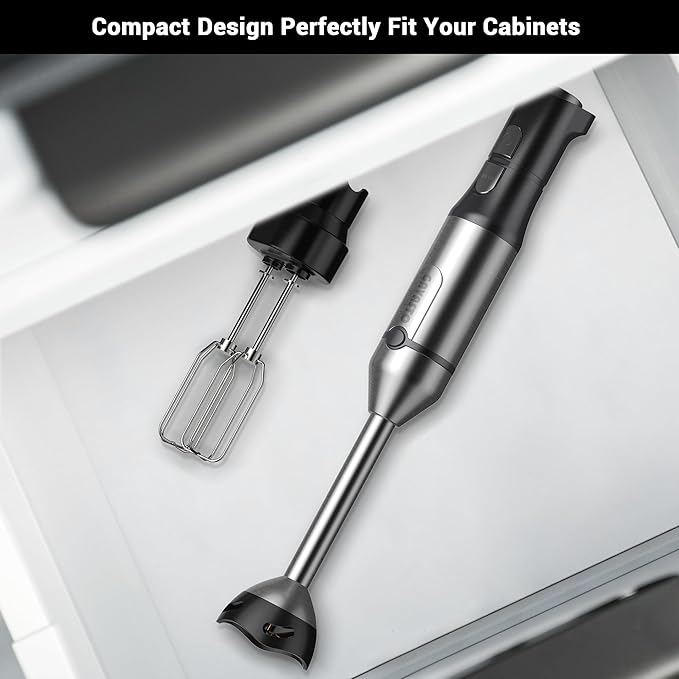 - Complete Kitchen Accessories Included: Your package comes with a snap-on Blending attachment, a twist-and-lock Chopper featuring a removable blade, and a pair of Egg Beaters. The versatile chopper doubles as a mini food processor, ensuring your kitchen tasks are both enjoyable and effortless with all the essential accessories included.