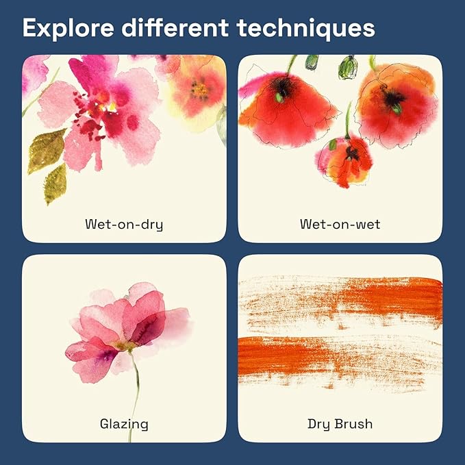 - Versatile Application Techniques: Our watercolors are designed for flexible use, allowing for smooth flat washes and easy layering. The paints do not leave hard edges when dry, enabling a range of techniques for professional results.
