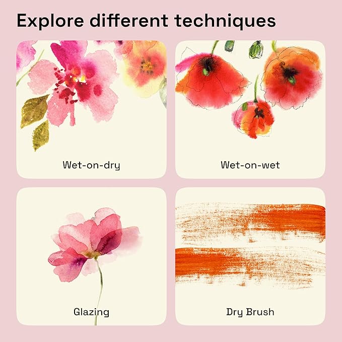- Versatile Application Techniques: Our watercolors are designed for flexible use, allowing for smooth flat washes and easy layering. The paints do not leave hard edges when dry, enabling a range of techniques for professional results.