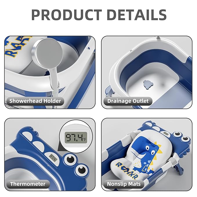 - Adorable and Functional Design: Our baby shower tub features a charming crocodile-shaped design that adds joy to bath time for your little one. Its foldable design ensures convenience and safety, accompanying your baby from newborn to toddler (0-36 months) under adult supervision. Enjoy a delightful and safe bathing experience at every stage of your baby's growth.