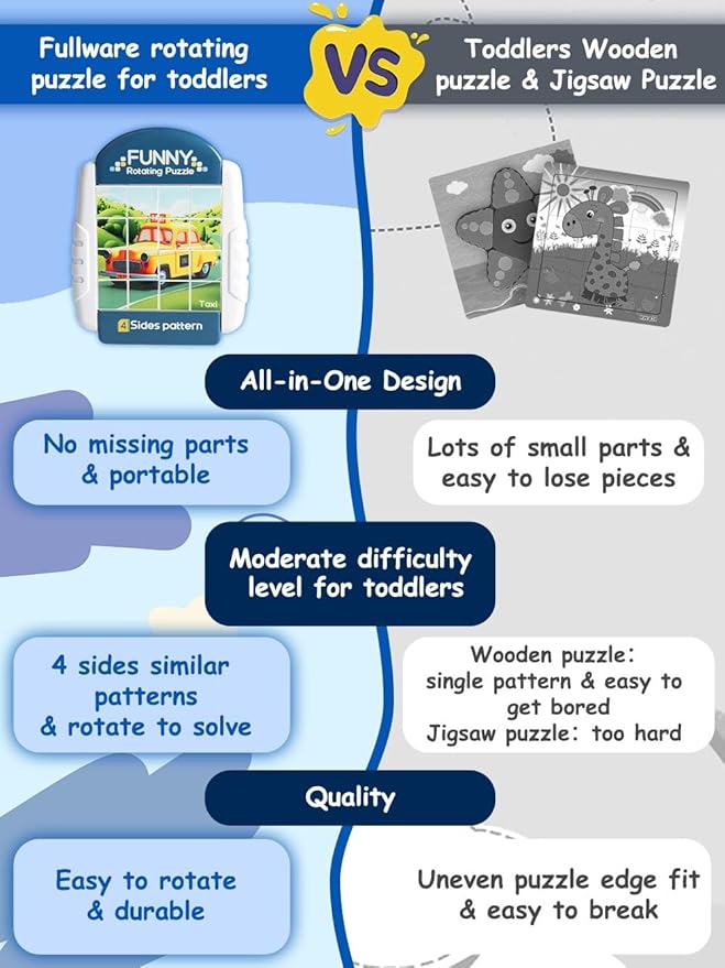 - A HANDY TOY FOR OUTINGS - Whether in the car or at a restaurant, our compact Rotating Puzzles can be carried along and keep children quiet and occupied. Moreover, there is no risk of missing pieces after playing with this all-in-one design puzzle!