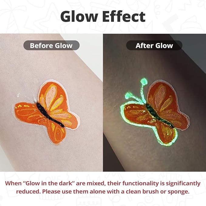 - EXCLUSIVE LUMINOUS FORMULA: Stand out with Grida's luminous face painting formula, a unique feature only available from our brand, ensuring your designs captivate even in the absence of light.