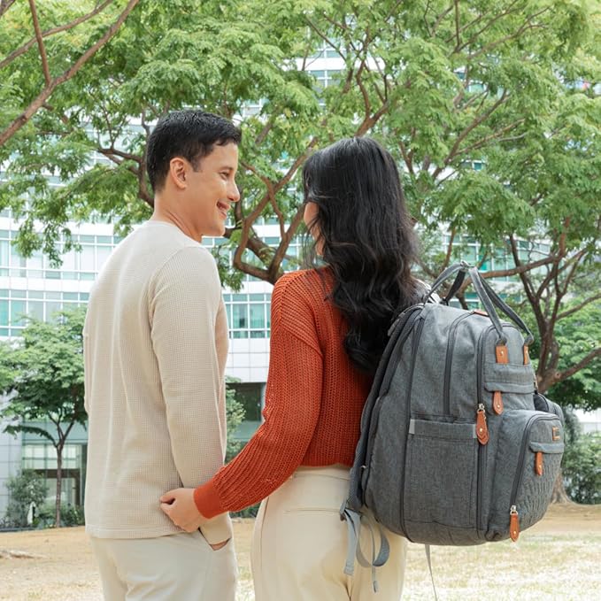 BabbleRoo Extra Large Diaper Bag Backpack, Expandable Baby Bag with Up to 50% More Capacity - Travel Essentials Baby Bag Tote with Changing Pad, Stroller Straps & Pacifier Case - Unisex, Dark Gray