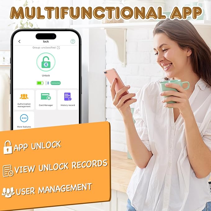 - 🔓【Multi-Access Options】Seamlessly unlock your cabinet with the app, RFID card, or via NFC and supports iwatch unlock for ultimate convenience, eliminating the need for keys and passwords.