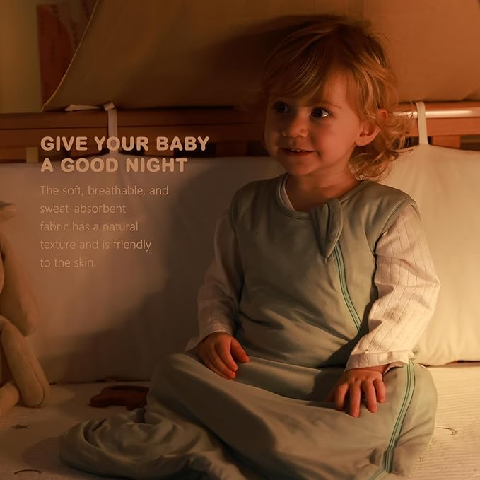 - 【Sleeveless】Baby sleep sack should be sleeveless to aid the heat loss and air circulation. Babies sleeping under traditional blankets rarely sleep with their arms inside. Sleeveless design reduces the risk of overheating. Your baby is covered and warm all night. No more kicked off covers means your baby sleeps more comfortably.