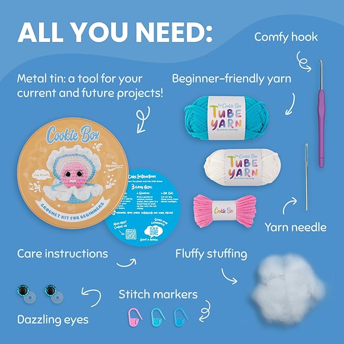 - đ Our Promise to You: The entire Cookie Box team is committed to making crochet truly beginner-friendly, frustration-free, and rewarding. Every kit is designed for the best learning experience, combining high-quality materials, clear guidance, and real support. Thank you for being part of the Cookie Box crochet community!