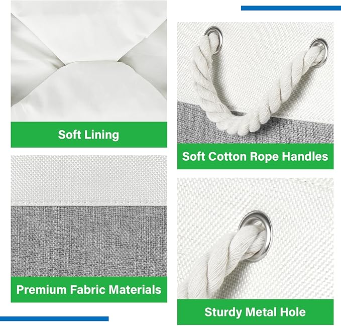 - Cotton Rope Handles & Premium Fabric: Soft handle will give you a very comfortable grip feeling, will not feel strangled hands, more easier to use the linen basket. The canvas storage bins equipped with soft and sturdy handles for moving conveniently. Sturdy soft handles on both sides are convenient to retrieve from shelves. These closet storage baskets are made of durable fabric which is strong and lightweight