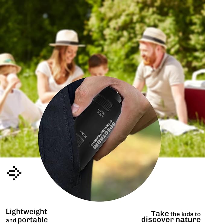 - 【pocket size 】Our mini microscope has a size of 2.5" x 1.4" x 4.5" and weights in only at 0.16 lb. Its compact size makes it easy to travel with, to be taken on a field trip, and be used at school for science project.