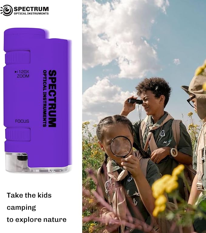 EasyMicro LED Lighted Pocket Microscope 60-120X Magnification Purple Color