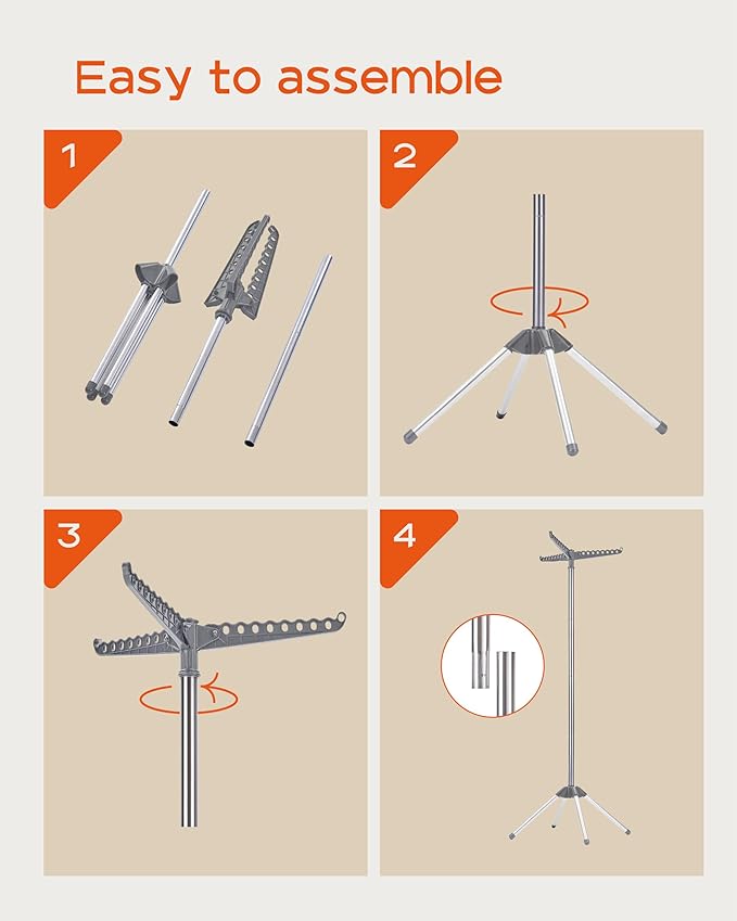 - [Easy to assemble and carry] This drying rack can be installed in just four steps and can be completed within three minutes. The easy to disassemble and assemble design makes it possible for you to carry it with you when you need to dry your clothes on a camping trip.