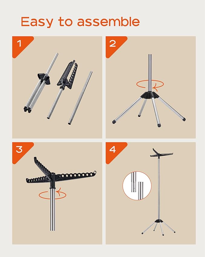 - [Easy to assemble and carry] This drying rack can be installed in just four steps and can be completed within three minutes. The easy to disassemble and assemble design makes it possible for you to carry it with you when you need to dry your clothes on a camping trip.