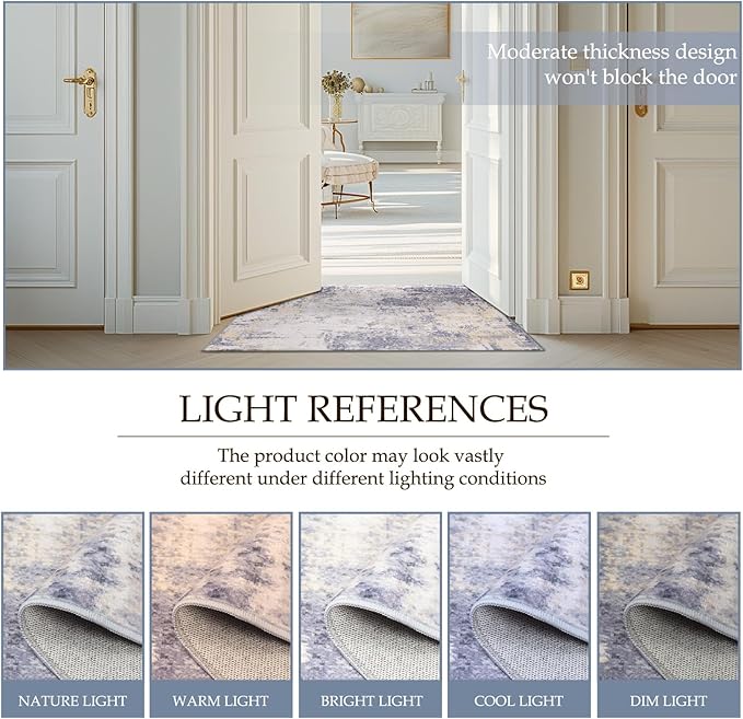 - Thin Design & Folding Packaging: this rugs with moderate thickness not only decor your home, soft on touch but also can be easily placed behind doors and under furniture. The sweeping robot can move around to clean the area rug. The thin design also makes it convenient for you to put the rugs into the washing machine for cleaning and easy to store.
