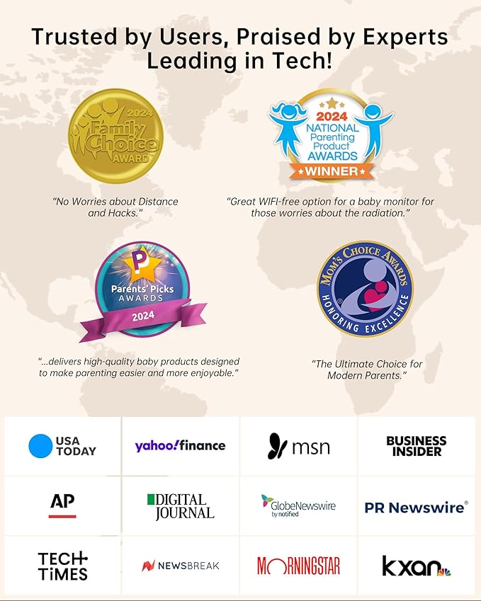 - [Extra Long Range and Hack-Free for Family Security] Enhanced no wifi baby monitor boasts an impressive 3000ft stable link through over 5 walls and floors, eclipsing other non wifi baby monitor. With a triple layer reinforced protection akin to bank security, this portable baby monitor prevents hacking and unauthorized access, providing a safety monitoring solution to protect your family's privacy, especially for areas with unreliable or limited internet connectivity.