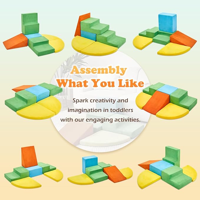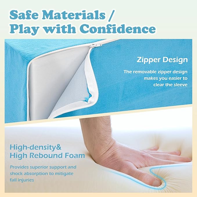 - 【Safe&Fun to Play】: Our climbing blocks for toddlers 1-3 are made from non-toxic and odorless fabric. Designed with hidden zippers to prevent scratching on children's soft skin, our blocks provide a reassuring and safe environment for play. With a focus on safety, our blocks are built without hard structures or sharp edges to protect children from bumps and injuries.Your child can safely play, toddle, and roll on this climbing toy that offers a soft and supportive surface, providing peace of mind for parents.