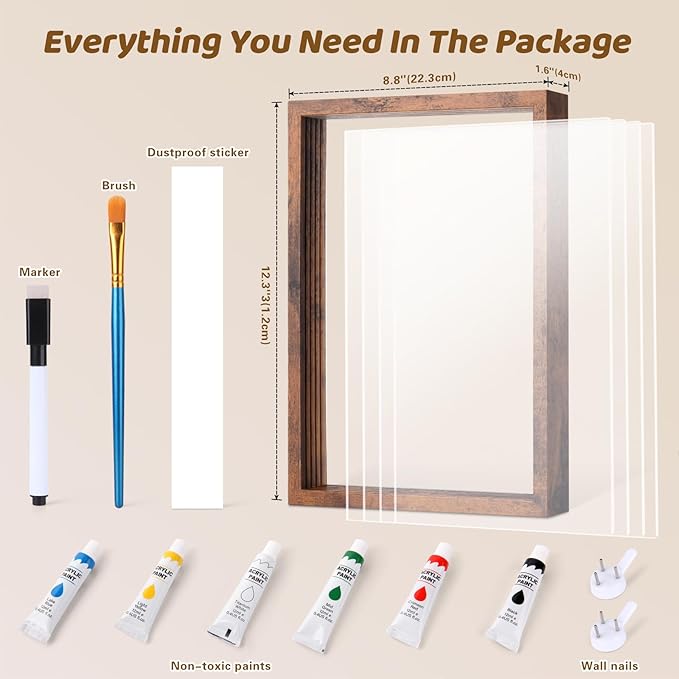 - DIY FAMILY KEEPSAKE FRAME: Create a timeless family treasure using our all-in-one DIY handprint kit! Quickly and easily capture handprints, even beloved pet paws on premium acrylic sheet. Then add heartfelt messages or names using the marker pen. Display your unique artwork proudly in the sturdy wooden frame included with the kit which will look perfect even after years to come. A unique keepsake that tells your family's story