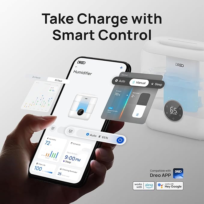 - ๐๐ช๐ข๐๐๐๐๐ฎ ๐พ๐ค๐ฃ๐ฉ๐ง๐ค๐ก, ๐๐๐๐ง๐๐ซ๐๐ง ๐๐ค๐ช ๐ผ๐ง๐: Use the DREO app, voice commands, or Alexa to remotely manage your cool mist humidifiers, Easily monitor indoor humidity and adjust settings to ensure a healthy environment for your family, especially suited for babies, plants, and pets.