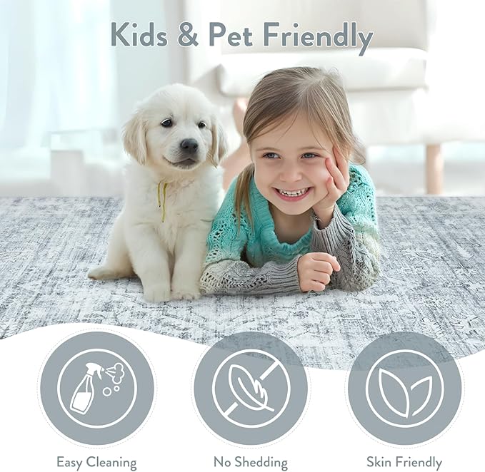 - Soft & Kid-Friendly Surface--This 6x9 area rugs boasts a low-pile, cozy surface that's soft, durable, and non-shedding, making it ideal for both children and pets. The short-pile texture ensures both comfort and practicality.