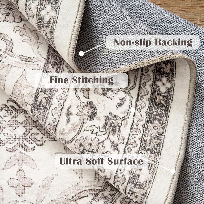 jinchan Round Rug 6ft Washable Circle Soft Rug - Low Pile Vintage 6'Round Indoor Beige Floral Print Stain Resistant Boho Carpet Ultra-Thin Non-Slip for Living Room Nursery Bedroom Dining Room Kitchen