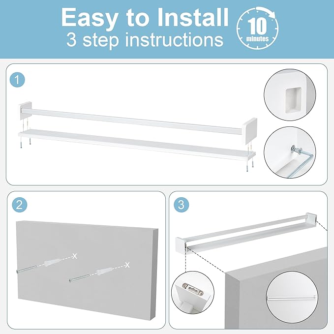 - Easy to Install: With the included installation manual, you can quickly and easily install these shelves in minutes. Once installed firmly on the wall, they can hold up to 20 lbs of weight, making them a reliable storage solution for your home