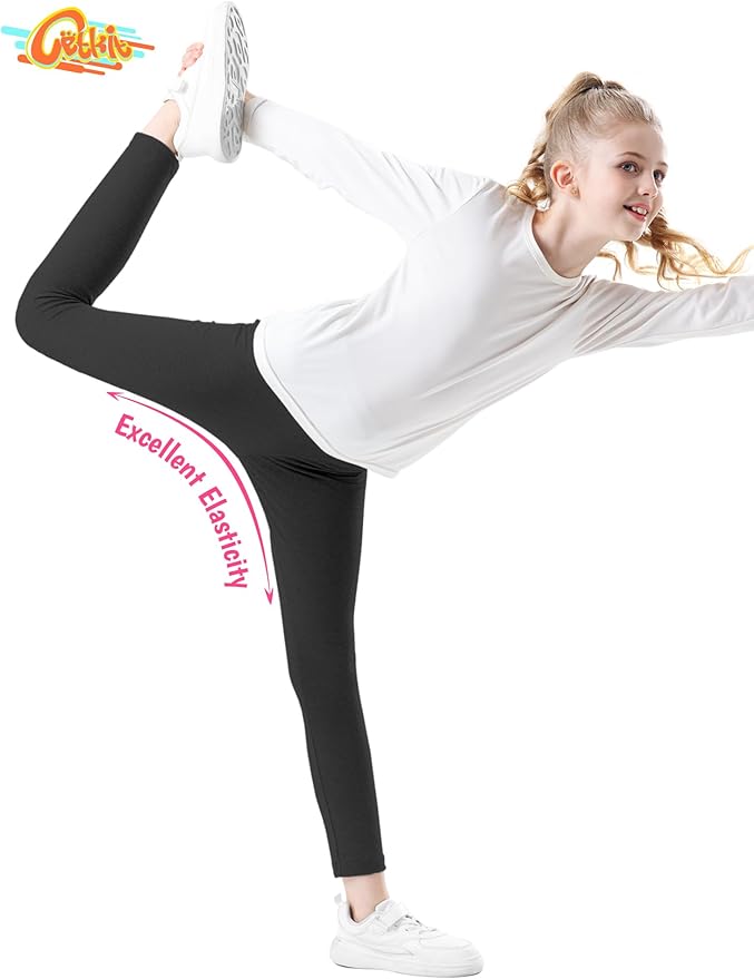 - 【Stays in Place】 Our pull-on black legging have high shape retention and a soft, unrestricted elastic waistband to keep them in place. These girls' athletic leggings feature flatlock seams that provide comfort and create a classic look. Even with frequent and heavy wear, these girls' leggings maintain their accurate size.