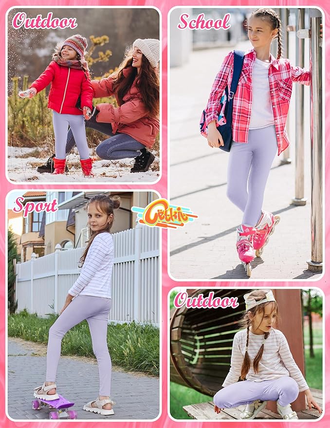 - 【Stays in Place】 Our pull-on leggings for kids have high shape retention and a soft, unrestricted elastic waistband to keep them in place. These girls winter leggings feature flatlock seams that provide comfort and create a classic look. Even with frequent and heavy wear, these girls' leggings maintain their accurate size.