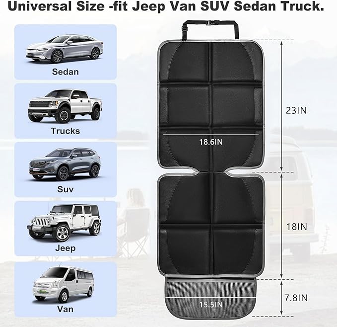 - Recommended Uses For Product : Protecting car seats from child car seats, preventing indentations and scratches, and offering storage with mesh pockets. Protecting car seats from child car seats, preventing indentations and scratches, and offering storage with mesh pockets.