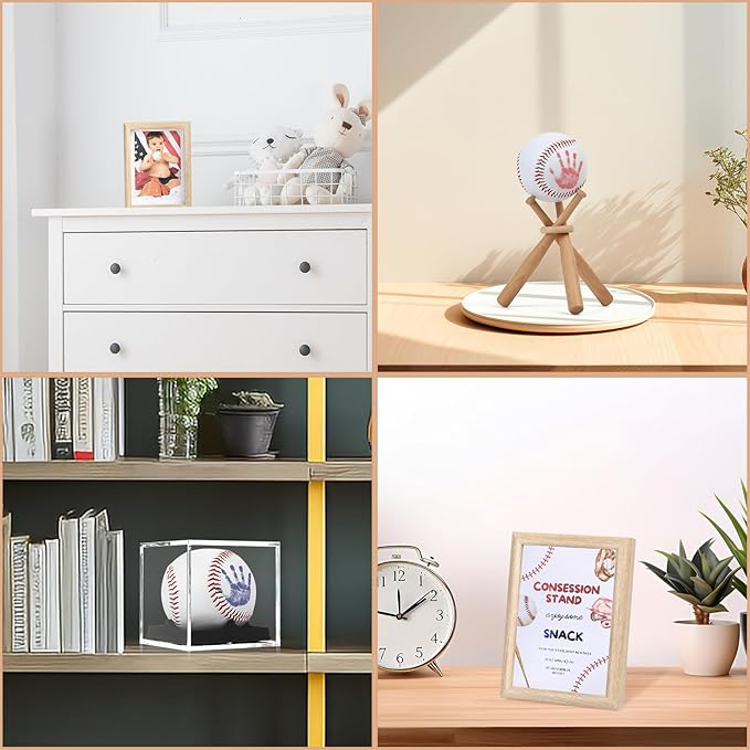 - Simple to Use, Beautiful to Display: Creating your keepsake is a breeze. Simply apply the washable ink to your baby's hand or foot, gently press onto the baseball, and let it dry. Place the inked baseball into the acrylic case, and showcase the photo frame with your baby's picture. The included wooden baseball stand is perfect for displaying another special baseball, making your keepsake a stunning addition to your home decor.