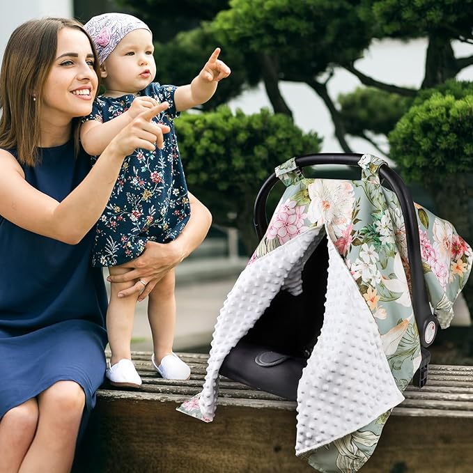 - SWEET GIFT: Our baby car seat cover with green leaves and vintage floral pattern is stylish, cute and fun, perfect for mom and baby. It is the perfect gift for baby and any new mom