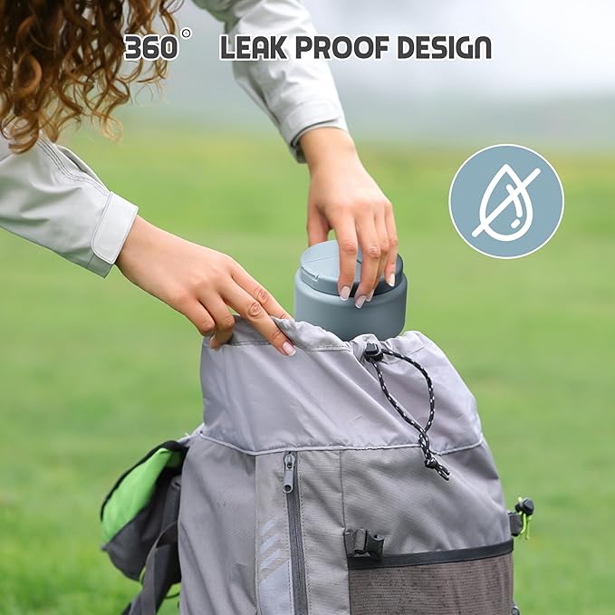 - 100% Leak Proof :Our food thermo comes with a thick silicone gasket. It is full sealed. So you can toss it in your bag or insulation bag without worrying about spills. Wide mouth design are also very easy to clean.