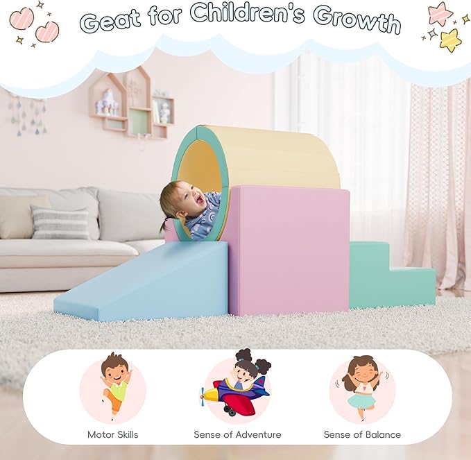 - PRACTICE SENSE OF SPACE & BALANCE: The fun of multiple combinations Blocks stimulate the child's imagination.Climbing & crawling increased control and balance of limbs.Our colorful foam play set are perfect for indoor use,like living room, amusement park, kindergarten play area, children's training institutions, shopping mall rest area