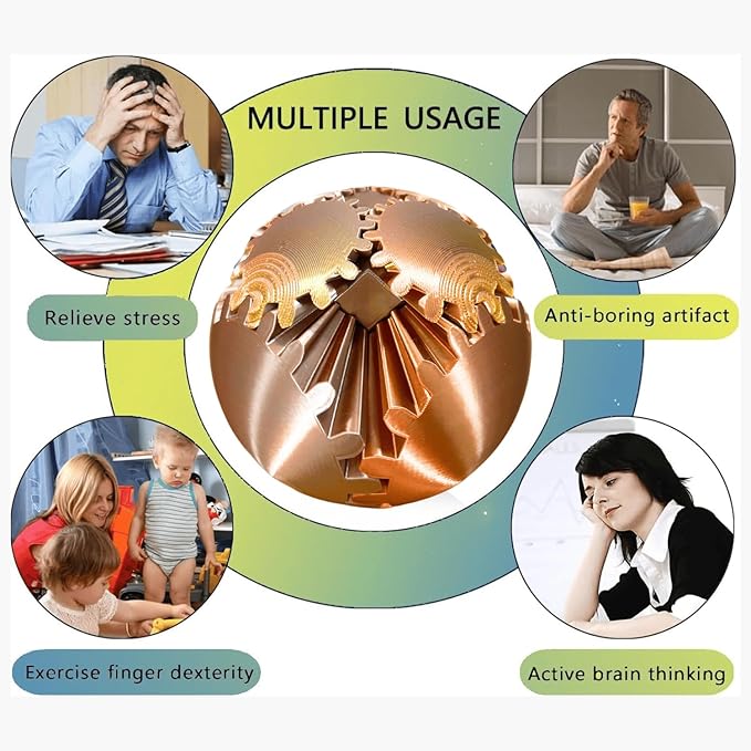 - 【3d Printed Gear Ball】The spin ball is an innovative finger toy designed to provide stress relief and anxiety reduction effects. GearSphere - The Steampunk Whirling Wonder Fidget is made of high-quality 3d printed materials with a smooth surface and durable structure.