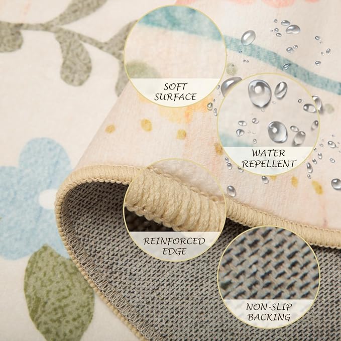 - Machine Washable:The bedroom rugs are machine washable,allowing for both machine wash and hand wash options.It is recommended to wash them in cold water.This floral rug is crafted with a low pile that won’t block opening and closing doors, make machine wash possible.Small stains can be blotted with a rag,soft-bristled brush,vacuum,or robotic vacuum cleaner.Avoid using bleach and high-temperature ironing