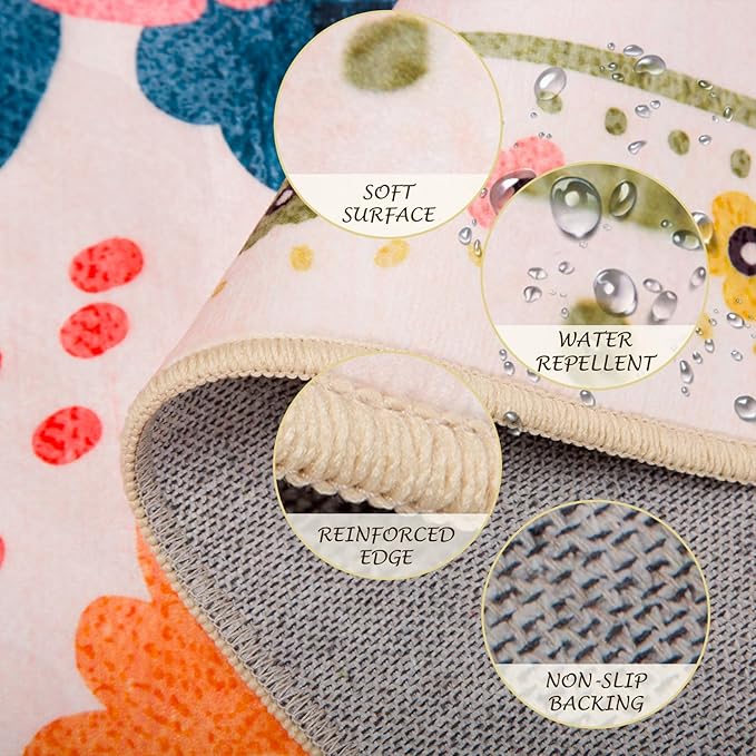 - Machine Washable:The entryway rug are machine washable,allowing for both machine wash and hand wash options.It is recommended to wash them in cold water.This floral rug is crafted with a low pile that won’t block opening and closing doors,make machine wash possible.Small stains can be blotted with a rag,soft-bristled brush,vacuum,or robotic vacuum cleaner.Avoid using bleach and high-temperature ironing