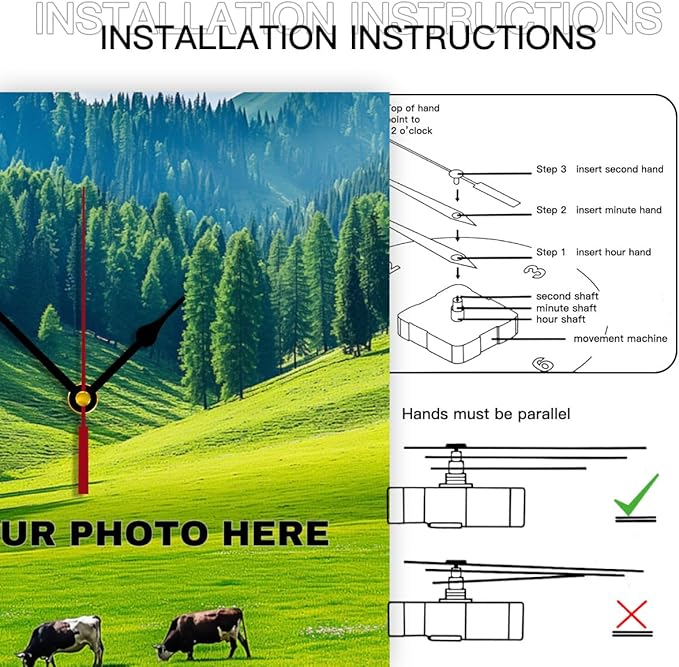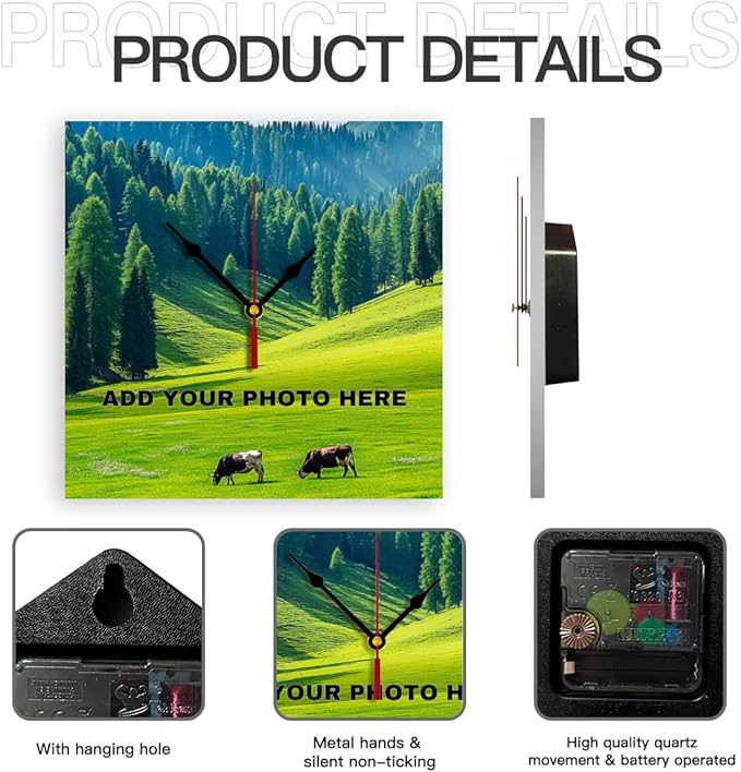 - ⏰⏰Personalized pictures clocks:Please click the“customize now“button at upper,upload your customized photo and add text.Stretch photo to fill the entire printing area.Submit high definition images for better print results.