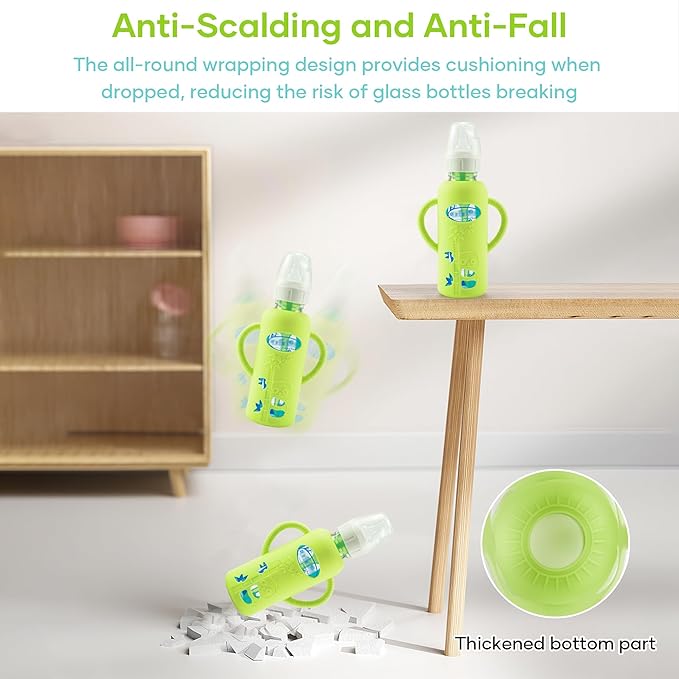 - 【Compatibility】- The baby bottle silicone sleeve is compatible with Dr. Brown's Natural Narrow Glass Baby Bottles 8 oz. (Other series are not applicable)